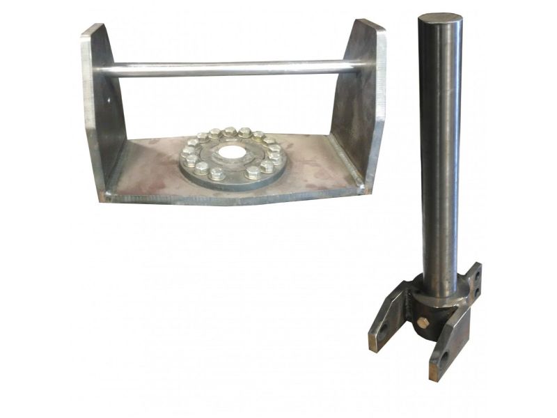 Includes cradle, 1″ cradle pin, 2 top plates, 2 1/4″ pin with collar. Does not include hardware.